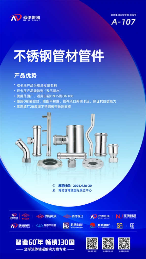 2024水協年會聚焦城鎮水務行業現狀與高質量發展,玫德集團作為全球領先的流體輸送產品制造商和解決方案專家,創立于1961年,目前已發展為以流體輸送產品及服務為主的現代化、多元化跨國企業集團,銷售遍布全球130多個國家和地區,擁有濟南、臨沂、泰安、威海、鶴壁、肇慶、泰國、越南、波蘭9個海內外生產基地。