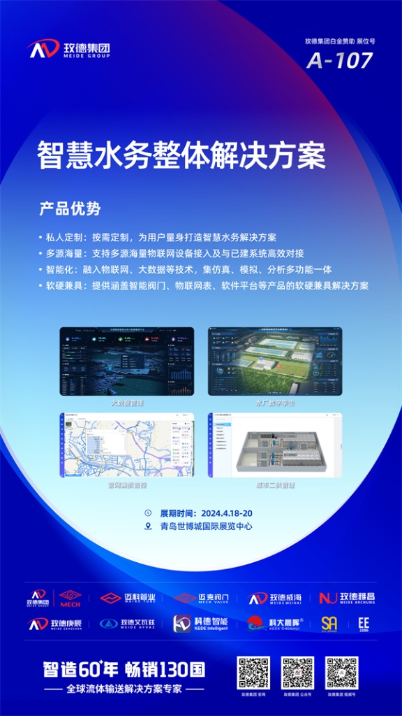玫德集團水務領域產品即將亮相中國城鎮供水排水協會2024年會暨城鎮水務技術與產品交流展示會