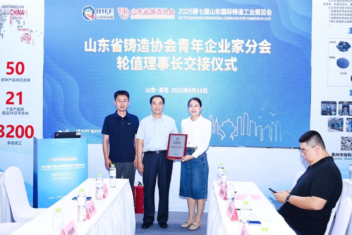 濟(jì)南科德智能科技有限公司總裁劉少云參加山東省鑄造協(xié)會(huì)青年企業(yè)家分會(huì)第四次代表會(huì)議,并當(dāng)選為本屆輪值理事長(zhǎng),展現(xiàn)了玫德集團(tuán)在行業(yè)中的領(lǐng)導(dǎo)地位。