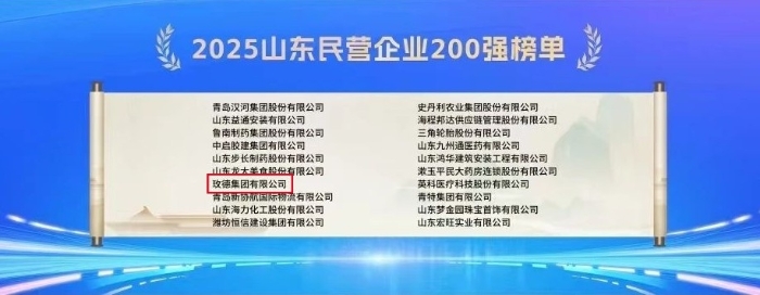 玫德集團(tuán)入選2025年山東民營(yíng)企業(yè)百?gòu)?qiáng)系列榜單